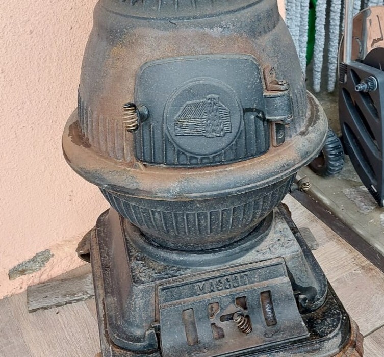 Alla domanda “che ne facciamo di una vecchia stufa a legna?”, perdipiù in ghisa e malridotta, decidemmo di portarla all’aperto dove il tempo è più variabile, comunque al riparo. In tal modo avremmo potuto scrutarla meglio e deciderne con calma il destino, quale che fosse il meteo incombente.
